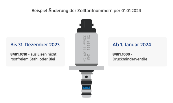 Beispiel Änderung der Zolltarifnummer per 01.01.2024